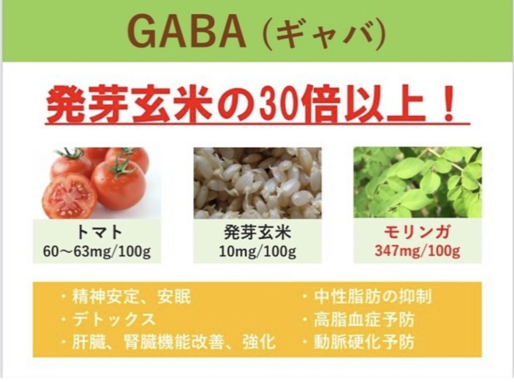なんと!!モリンガには発芽玄米の30倍以上のGABAが含まれています!
